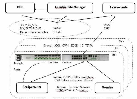(avec redémarrage complet et à distance du site) (jusqu'à 12 x 500W) - Le SiteBoss 571 collecte, synthétise et remonte les données d'environnement ainsi que les alarmes des équipements actifs
